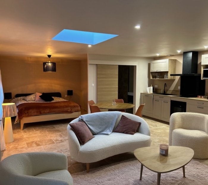 C’est un lieu chaleureux, lumineux et entièrement équipé. Face à la nature, vous pourrez profiter du calme de la campagne pour passer un moment de détente inoubliable.